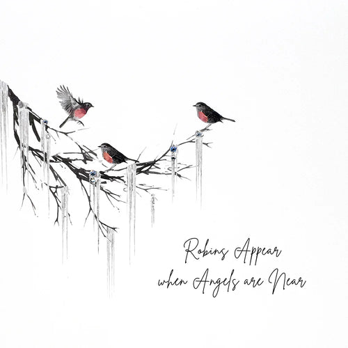 Five Dollar Shake Small Christmas Card ‘White Christmas’ Robins appear when Angels are Near