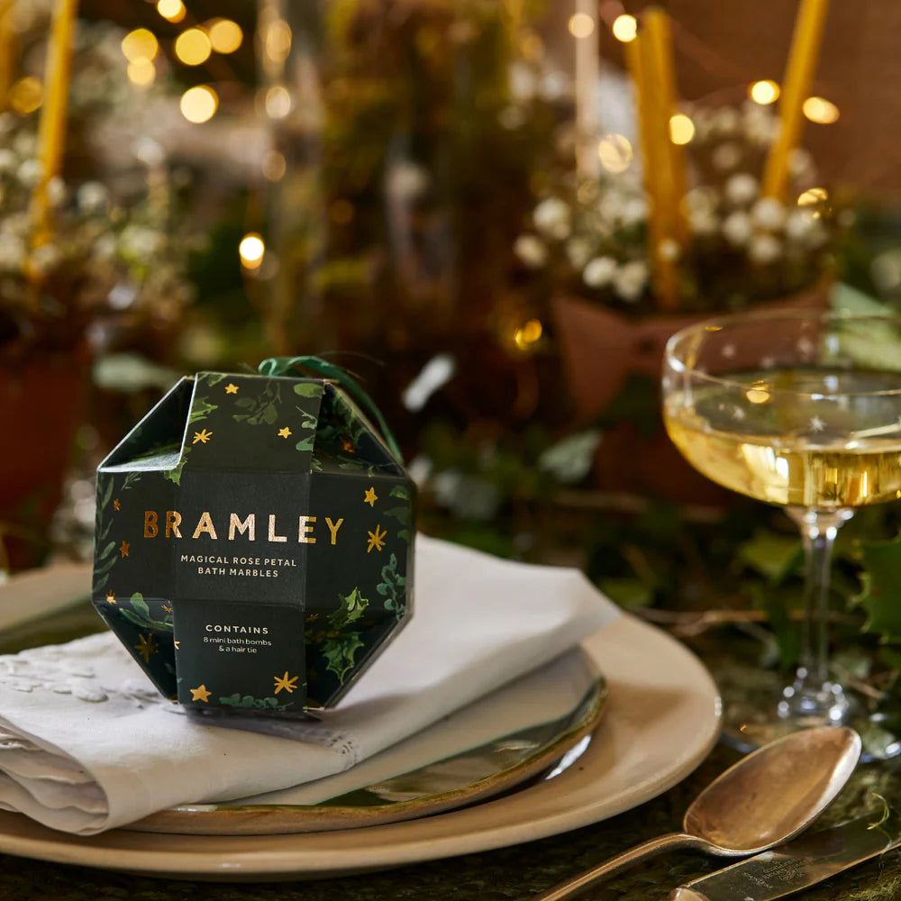 Unwind with Bramley's magical Christmas Bauble. Inside, discover mini bath bombs infused with rose petals and natural botanicals to soothe skin and lift the spirits. A beautifully fragrant treat for moments of calm and relaxation.