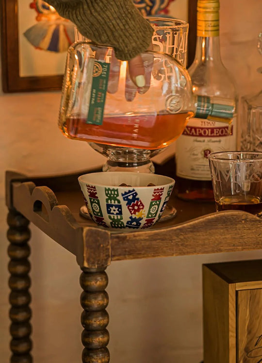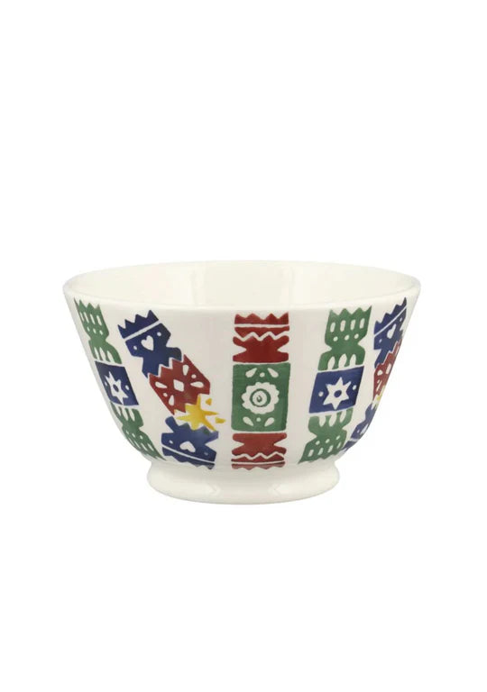 Crisps, nuts, olives, truffles, cereal, porridge, soup, cherry tomatoes … the list of things you could fill a Christmas Crackers Small Old Bowl with is endless. With its jolly Christmas cracker decoration, our small serving bowl can even be put to good use when it’s time for parlour games after dinner: use the bowl to contain the slips of paper containing words for charades or the roles for wink murder.