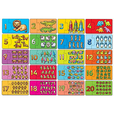 Make learning to count from 1 to 20 fun by matching the simple picture cards with the numbers. There's no tricking this clever puzzle, as only the correct cards will fit together! This allows your child to self correct their jigsaws.