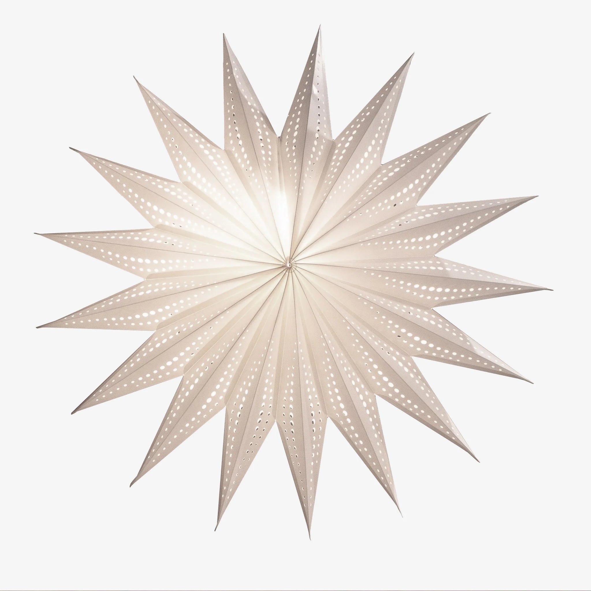 Make a bold and brilliant statement with this striking multi-pointed white paper star lantern. Featuring 17 precision-cut points and rows of tiny pinholes, it creates dramatic lighting effects and a clean, contemporary look. A clear white tone makes it a versatile match for any interior style or colour scheme.